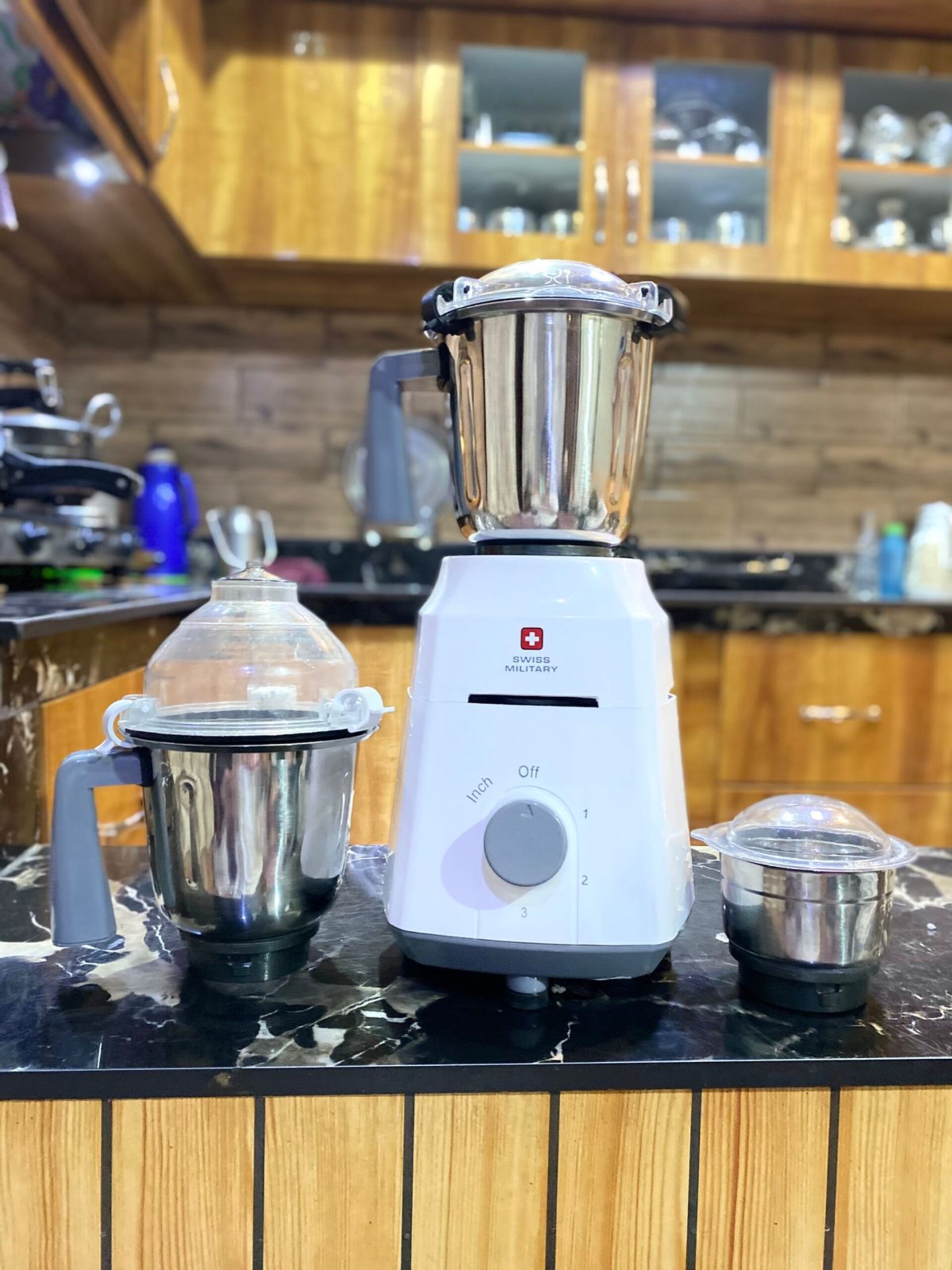 Achieve effortless and efficient grinding with the Swiss Military Magnifique 1000 W Mixer Grinder. Boasting a powerful motor and a sleek design, this appliance brings durability, safety, and performance to your kitchen.